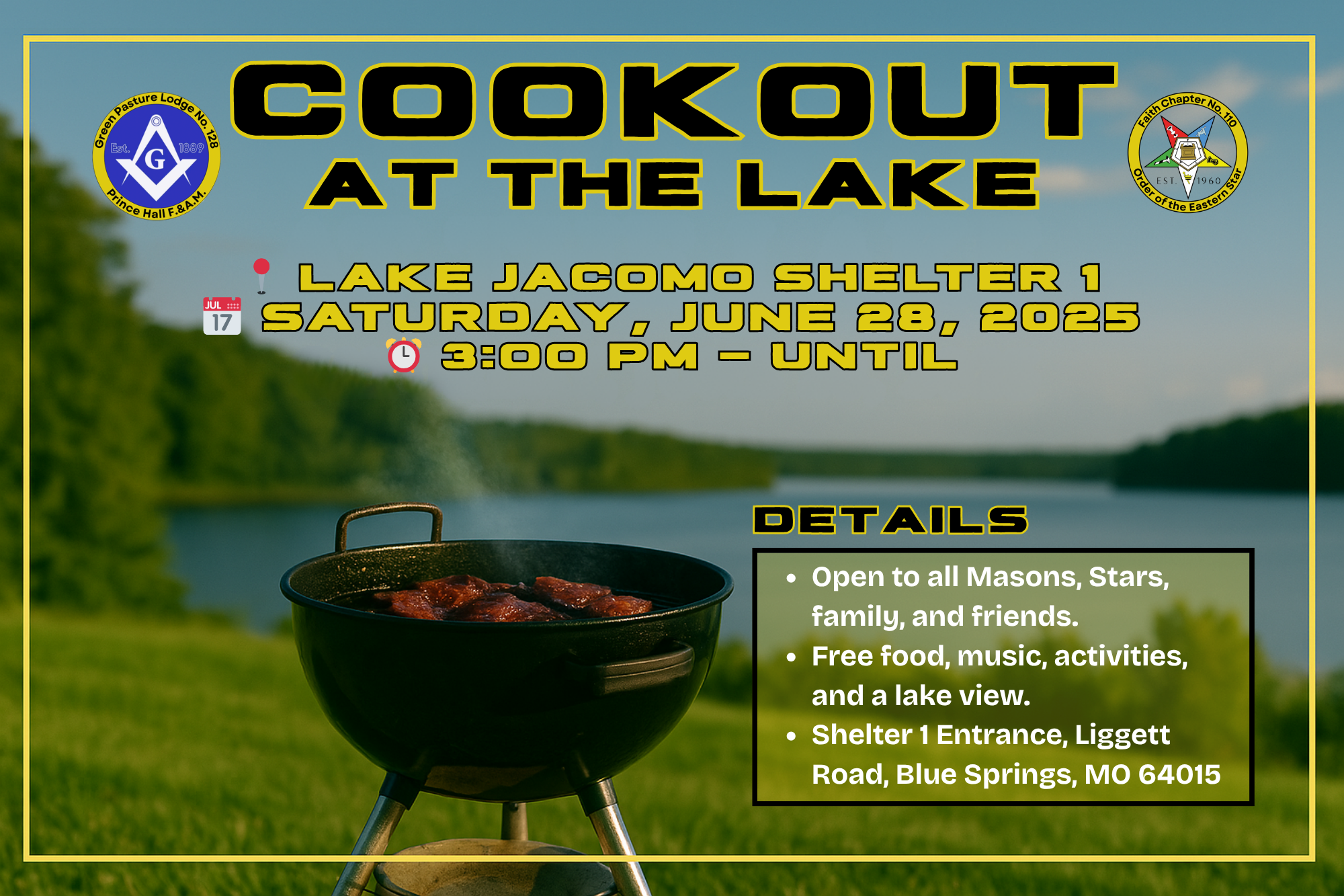 Our Annual Cookout at the Lake has become a tradition for Green Pasture Lodge No. 128 and Faith Chapter No. 110 to come together for fellowship, food, and fun in the great outdoors. Join us lakeside as we fire up the grill, share laughs, play games, and enjoy quality time with one another. This family-friendly […]